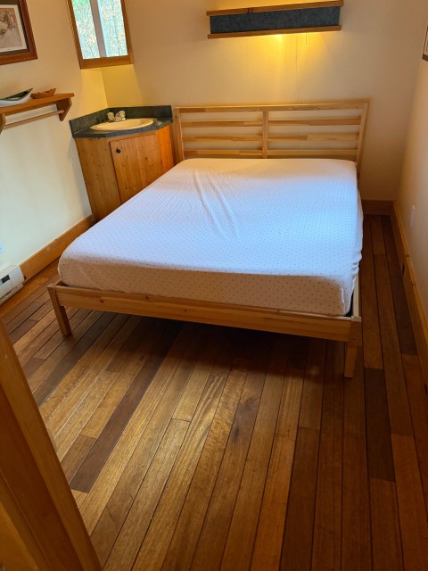 This cabin was designed and built by an architect from Montreal in the late 90's. I think his original listing best describes the cabin..."Mountainlake Camp" was conceived in December 1996 as a peaceful, recreational, year-round getaway in the Adirondack Mountains for two couples or a family. The area around the town of Loon Lake was chosen for its secluded beauty and rich history.The Camp buildings were designed to have little impact on the land and to blend naturally with the surrounding forest and mountains. The buildings also attempt to reflect the heritage of Loon Lake in the use of materials, proportions and details which were "borrowed" from historic structures there.The Camp itself is a study in building on a compact "footprint": environmental impact was minimized by limited site disturbance and use of materials. Also, very important to the design, it was possible to complete the project within one year of conception using the owners own labor to finish a builders 'shell'.Throughout the design process, much thought was devoted to layout, dimensions, proportions and the use and placement of materials to create a compact building with the feel and facilities of a larger home.The conception, design and building process was a rewarding experience. In 2003 we acquired our own direct access to Loon Lake. "Mountainlake Lookout" is located a short drive from the camp. There you will find a screened Gazebo and our own docks. At the Lookout you can enjoy beautiful Adirondack views including a classic Boathouse. Use the Lookout for a picnic lunch or swim and canoe from the docks.We hope that you will enjoy "Mountainlake Camp" along with the immense and diverse natural beauty which will surround you."