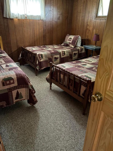 The Lodge is a 5 bedroom 2.5 bath fully equipped lake house that sleeps 12 people. Enclosed Front porch has gorgeous views of Eagle Bay and Fourth Lake. Tons of Lawn furniture and fire pit on expansive life front lawn with a private beach