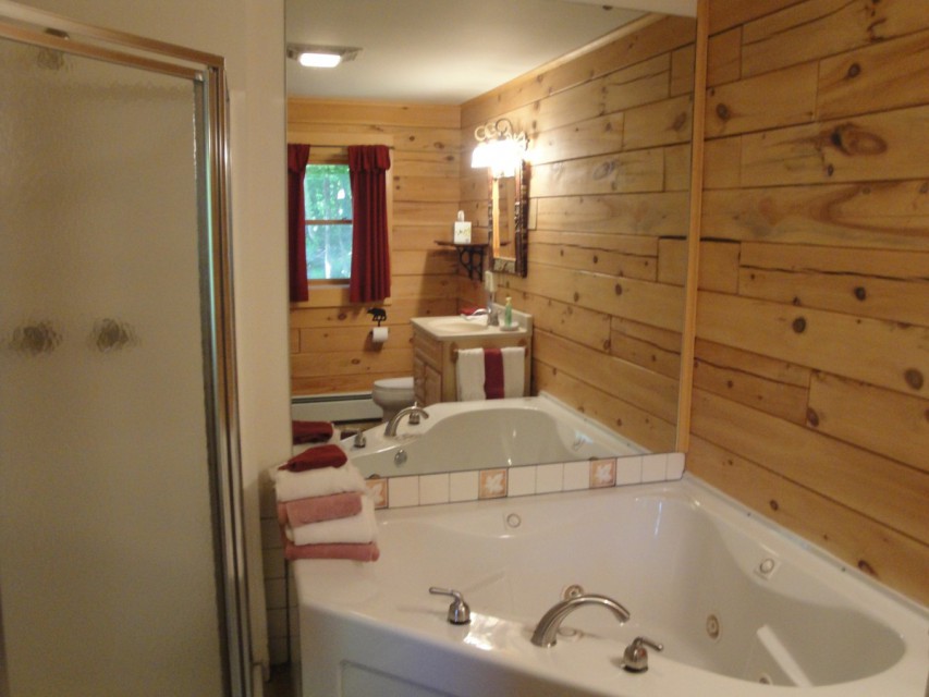 Our Bearfoot cabin is an Adirondack-style log cabin available for your vacation pleasure! Our cabin has 3 large bedrooms, and 2 1/2 bathrooms, with everything you need for the perfect mountain getaway. On the first floor is a large Master Bedroom with King size bed and and Smart TV with Roku & DirecTV. There is a full Whirlpool Jacuzzi in the Master Bath. Also on the first floor is the family room which also has a queen sleeper sofa. The kitchen has stainless steel appliances and hardwood floor …ing, with an adjacent full laundry room and half bathroom. French doors lead to the outdoor back deck with gas grill and picnic table area.