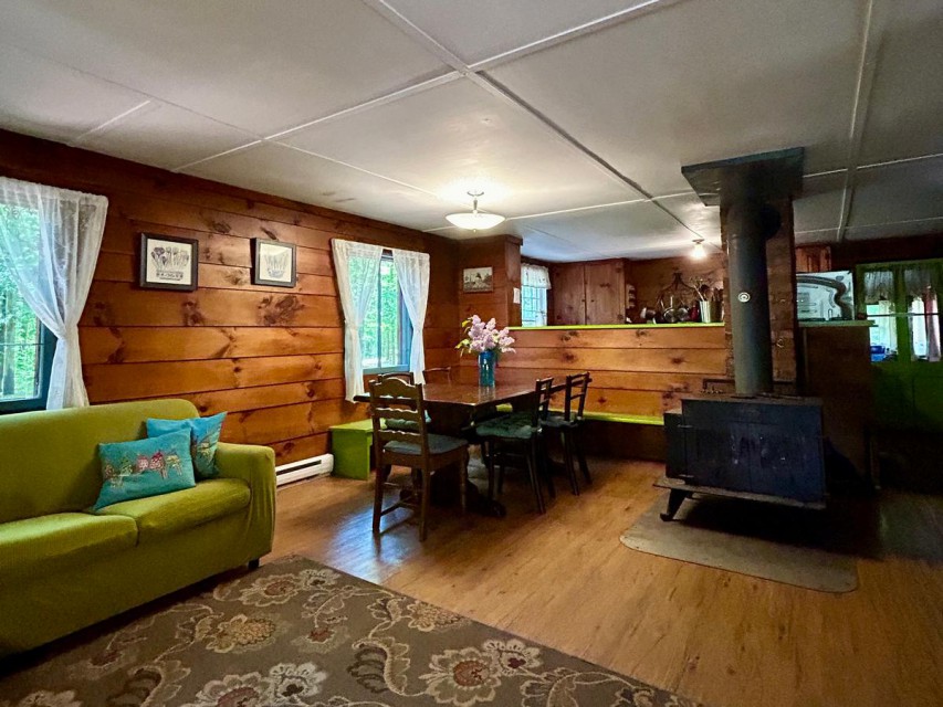 This fully furnished camp features a kitchen with all the new modern appliances including a range, microwave, full-size refrigerator, and an electric tea/coffee maker as well as a newly remodeled full bath with a tub and shower. The living area has rocking chairs, a sleeper, a full-size futon, and a dining table. We offer an HD TV connected to ROKU TV and media player as well as DSL high-speed internet and a CD/DVD player with a collection of movies. The main lodge has an enclosed veranda overlooking the river and mountains with a table and chairs for summer/fall dining.