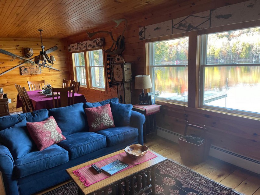 Relax at our "newer" Adirondack charming lodge and enjoy the breathtaking view of Sixth Lake. Available year round, it has four bedrooms and a den with a door so the camp can sleep12. Both the master bedroom, with its own private bathroom, and a second bedroom overlook the scenic lake. Two other full bathrooms, a washer/dryer, two refrigerators, sat. TV, VCR/DVD, gas stove, and dishwasher add to the many amenities. Large dock and ample parking allow you to park your boat, jet-ski, and snowmobile …s. Available to boating, canoeing, hiking, snowmobile trails, quaint near-by shops, water park, biking, fishing, and plane rides. There is a two car garage at the site and an automatic standby generator.