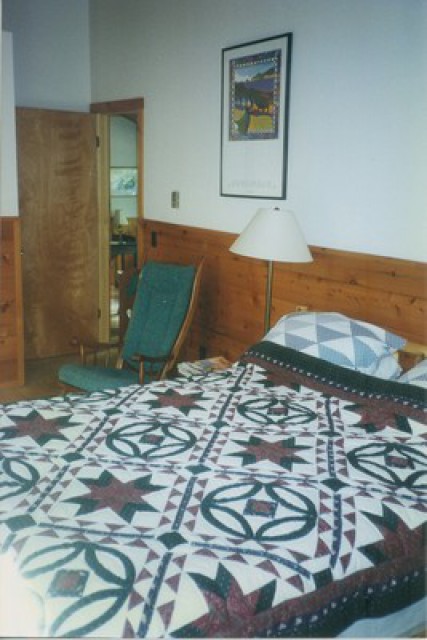 Our house is spacious, with four bedrooms, a cedar-paneled great room and dining room, kitchen, a dining porch, and a large recreation room. The master bedroom overlooks the lake. Three additional bedrooms bring lots of sleeping space and comfort; one room has a queen bed and there are two twin beds in each of the other bedrooms. A fold out futon in the recreation room can also be used for sleeping. There is a stone fireplace for cold nights and central heating as well. Two bathrooms and a washer/dryer complete the picture.