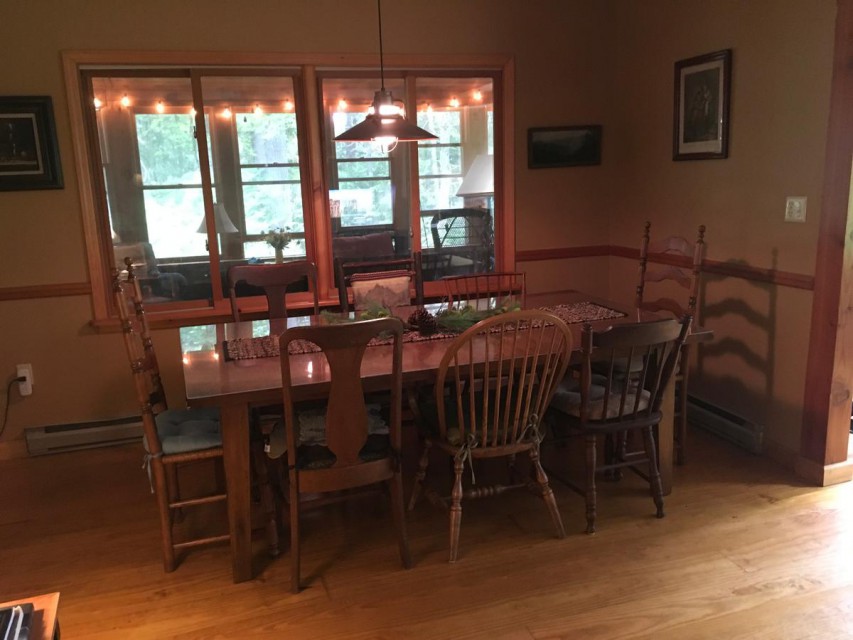 “Delightful Adirondack "camp" on the tail-end of Rainbow Lake. Quiet, well equipped, clean and comfortable. We rented "Blair's Blessing" with another couple and were well satisfied. The two upstairs bedrooms were very large and spacious and shared a bathroom in the hall. One viewed the lake and had a queen bed and a reading chair. The other room overlooked the circular drive/parking area and had a queen and a twin. All the beds we used were comfortable. The small bedroom on the main floor had a full size bed and was next to another full bathroom. There was a large dining table suitable for six guests. The rental was entered through a large enclosed porch with additional furniture, but had plenty of room for us to stash our hiking and kayaking equipment (paddles, PFDs, etc.} It also had a deck in the back with outdoor table and a grill. There were stairs down to the water which faced a boggy area but had a place to launch the two kayaks and canoe supplied with the rental. There was also a dock. It would have been difficult to get our own kayaks and paddleboards down to the water as we would have had to bring them through the enclosed porch (or bushwhack around it) and down a fairly steep winding path with steps, so we were glad there were some yaks and the canoe with the rental. Since we planned to spend our time paddling the many lakes and waterways in the region with our own yaks, this was not a problem. The rental is not located in an area suitable for swimming. Although we were told there was a "community" swimming float nearby, we were usually too tired to seek it out at the end of the day and didn't identify where it was located. The kitchen was particularly well equipped, but a bit of a bottleneck. One cook at a time, please. We enjoyed watching the birds, chipmunks and red squirrels that frequented the bird feeder off the back deck. We also had a red fox pay us a visit one evening and allowed us to take several pictures as he scrounged for fallen bird seed. Poor fellow must not have been having a successful hunt. ”