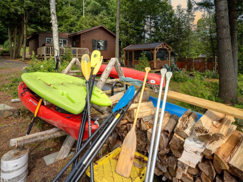 Welcome to Water's Edge at Little Wolf Lake! Experience the perfect blend of historic charm and modern comfort in our renovated 1931 waterfront cabin. Nestled on a private 1.5-acre lot with 300 feet of pristine shoreline, this year-round retreat offers a peaceful escape with breathtaking sunset views and direct access to the best of the Adirondacks. Our 3-bedroom cabin has been meticulously updated by local craftsmen t …o provide a cozy, high-quality stay. 800 sq. ft. of indoor space plus a beautiful screened gazebo and waterfront deck. Comfortably sleeps 6 guests with a Queen, Full, and two Twin beds. Includes a dishwasher, washer/dryer, high-speed Wi-Fi, and a Smart TV. Well-behaved dogs are welcome so the whole family can enjoy the trip! Outdoor Adventure at Your Doorstep! We provide everything you need to enjoy the water right from our private dock: Use our 4 kayaks, 2 SUPs, rowboat, or Grumman canoe at no extra charge. Wind down by the lakeside fire pit (wood provided) or enjoy a meal at the outdoor picnic tables and BBQ grills. Little Wolf Lake is known for being wonderfully warm (75-80F) by July! The lake freezes in winter for ice fishing and snowmobiling. You are perfectly positioned to explore the regions top attractions: Just 1/2 mile to the Adirondack Sky Center & Observatory for stargazing and the Little Wolf Public Beach. Only 6 miles from The Wild Center and a short drive to the ADK Rail Trail for biking, hiking, snowmobiling and cross-country skiing. Just 1.7 miles to the Raquette River Brewing and the charming shops and restaurants of downtown Tupper Lake. Lake Placid is only 30 miles away.